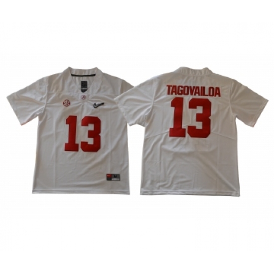 >Alabama Crimson Tide 13 Tua Tagovailoa White With Diamond Logo College Football Jersey