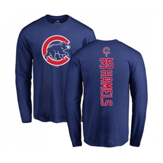 >Baseball Chicago Cubs #35 Cole Hamels Royal Blue Backer Long Sleeve T-Shirt