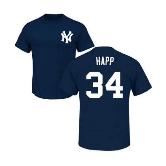 Baseball New York Yankees #34 J.A. Happ Navy Blue Name & Number T-Shirt