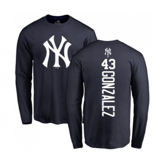 >Baseball New York Yankees #43 Gio Gonzalez Navy Blue Backer Long Sleeve T-Shirt