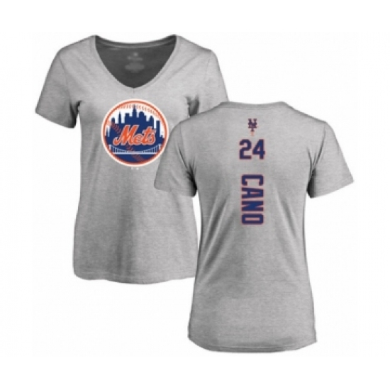 Baseball Women's New York Mets #24 Robinson Cano Ash Backer T-Shirt
