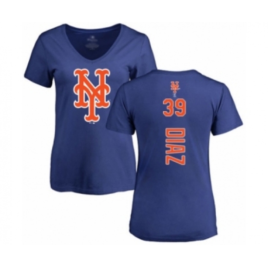 >Baseball Women's New York Mets #39 Edwin Diaz Royal Blue Backer T-Shirt