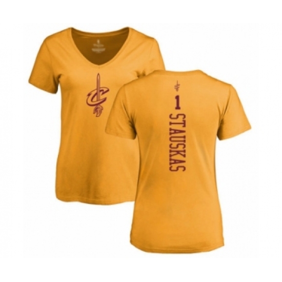 >Basketball Women's Cleveland Cavaliers #1 Nik Stauskas Gold One Color Backer Slim-Fit V-Neck T-Shirt