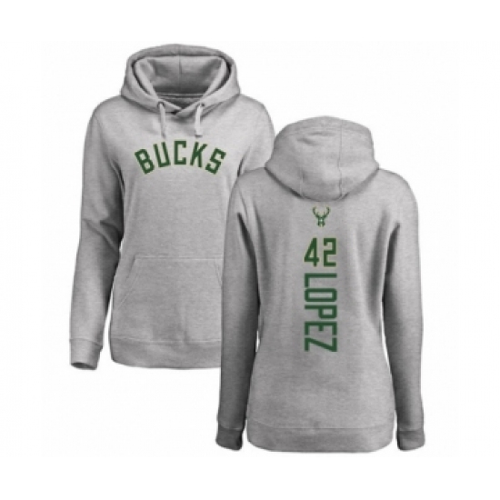 >Basketball Women's Milwaukee Bucks #42 Robin Lopez Ash Backer Pullover Hoodie