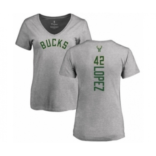 >Basketball Women's Milwaukee Bucks #42 Robin Lopez Ash Backer T-Shirt