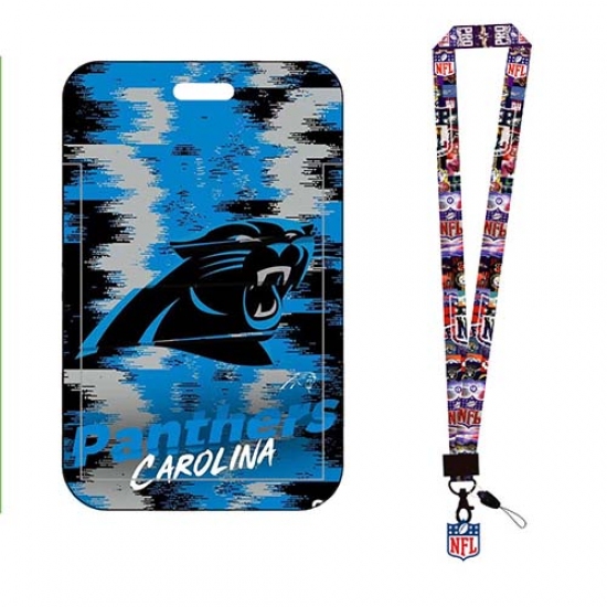 Carolina Panthers ID Stickers Badge Holder with Lanyard, Hard Plastic Key Card Work Badge Sleeve for Office, School, Factory, ID Credit Cards, s2