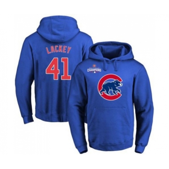 >Cubs #41 John Lackey Blue 2016 World Series Champions Primary Logo Pullover MLB Hoodie