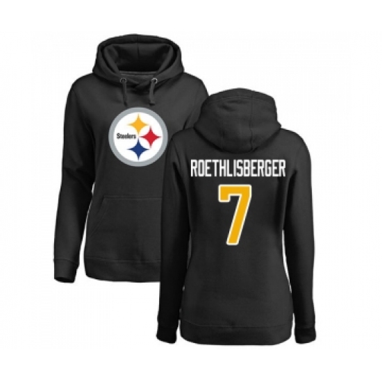 Football Women's Pittsburgh Steelers #7 Ben Roethlisberger Black Name & Number Logo Pullover Hoodie