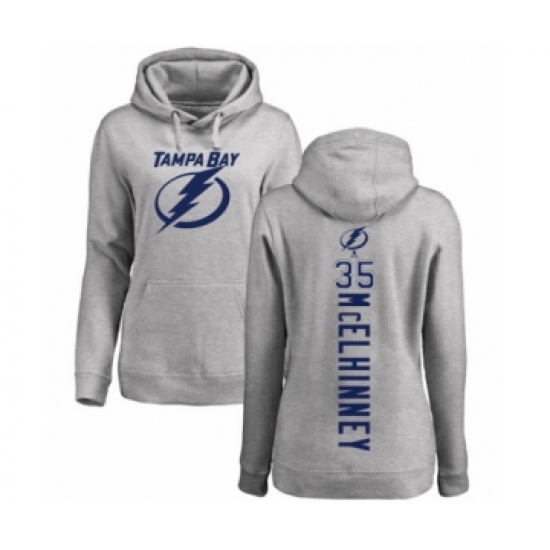 >Hockey Women's Tampa Bay Lightning #35 Curtis McElhinney Ash Backer Pullover Hoodie