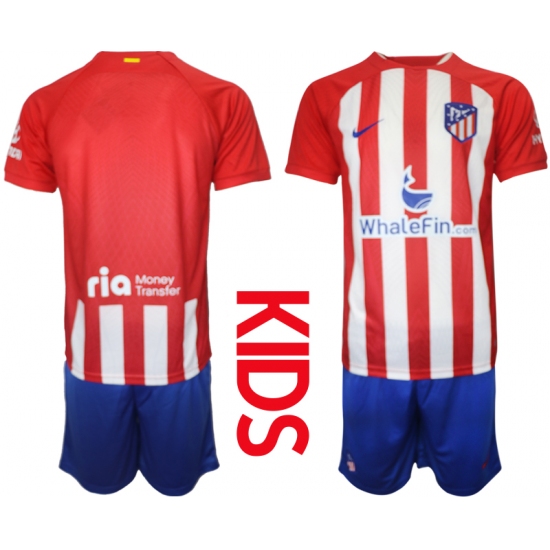 >Kids Atlético de Madrid Blank 2023-24 Red Blue Home Soccer Jersey