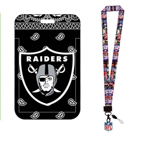 >Las Vegas Raider ID Stickers Badge Holder with Lanyard, Hard Plastic Key Card Work Badge Sleeve for Office, School, Factory, ID Credit Cards, Proximity Ke