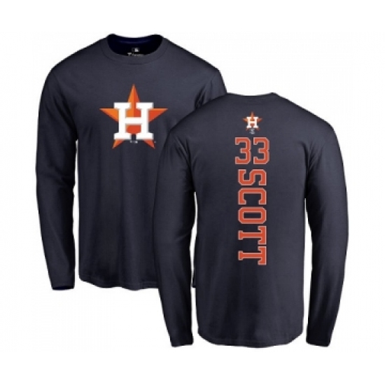 >MLB Nike Houston Astros #33 Mike Scott Navy Blue Backer Long Sleeve T-Shirt