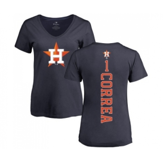 MLB Women's Nike Houston Astros #1 Carlos Correa Navy Blue Backer T-Shirt