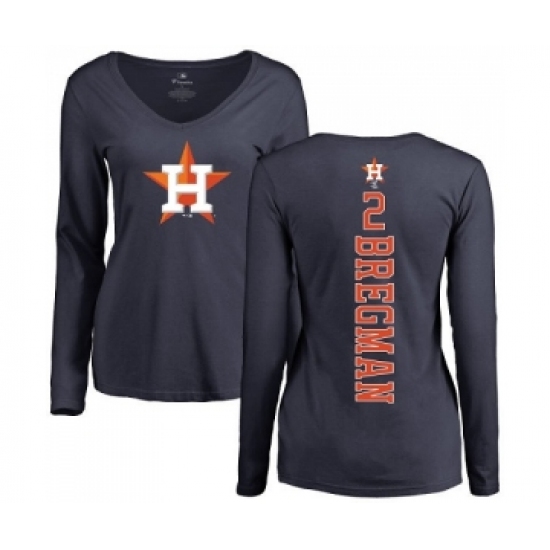 >MLB Women's Nike Houston Astros #2 Alex Bregman Navy Blue Backer Long Sleeve T-Shirt