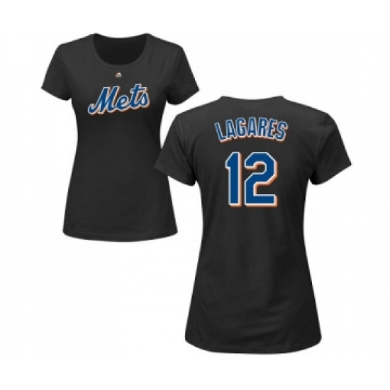 MLB Women's Nike New York Mets #12 Juan Lagares Black Name & Number T-Shirt