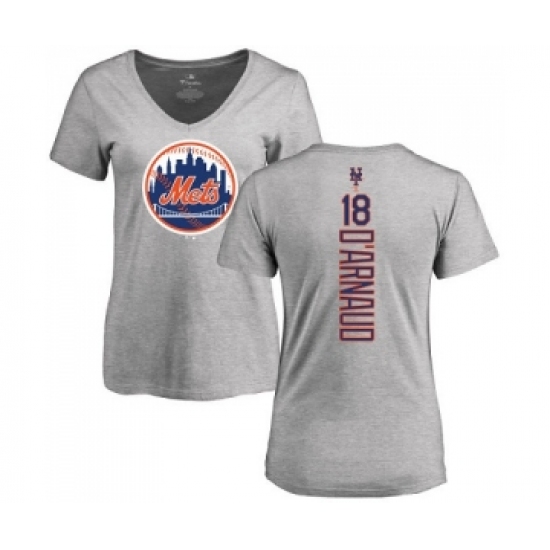 >MLB Women's Nike New York Mets #18 Travis d'Arnaud Ash Backer T-Shirt