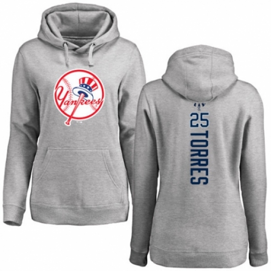 >MLB Women's Nike New York Yankees #25 Gleyber Torres Ash Backer Pullover Hoodie