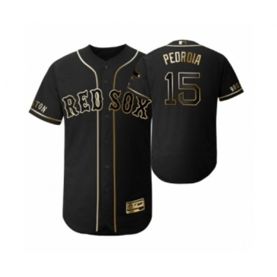 Men 2019 Golden Edition Boston Red Sox Black #15 Dustin Pedroia Flex Base Jersey