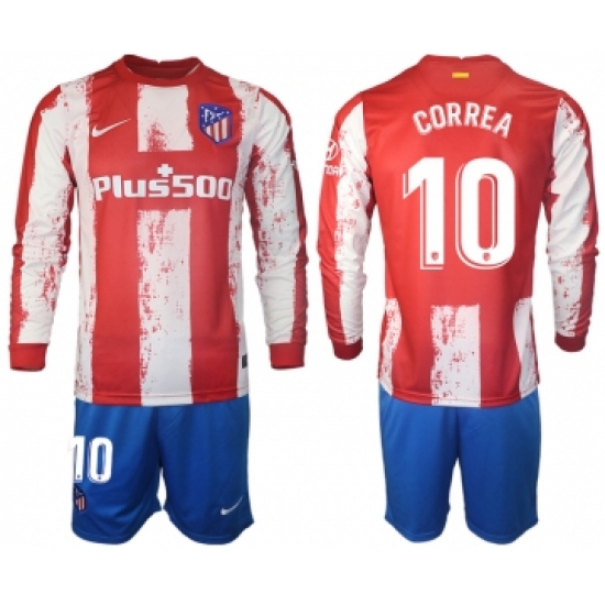 Men 2021-2022 Club Atletico Madrid home red Long Sleeve 10 Soccer Jersey