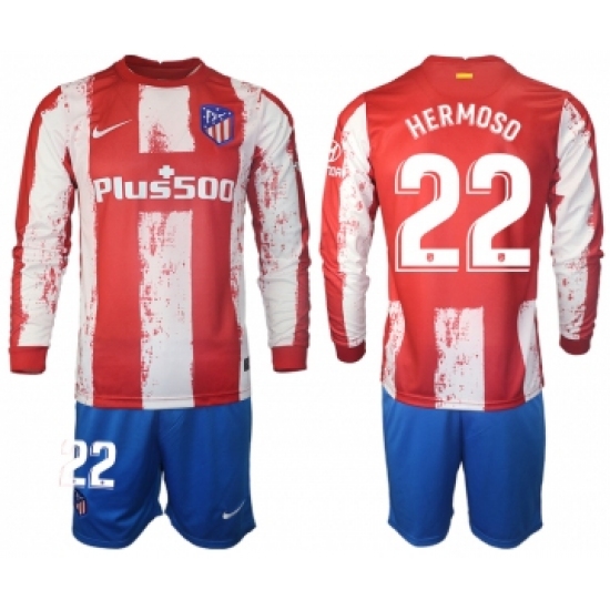 Men 2021-2022 Club Atletico Madrid home red Long Sleeve 22 Soccer Jersey