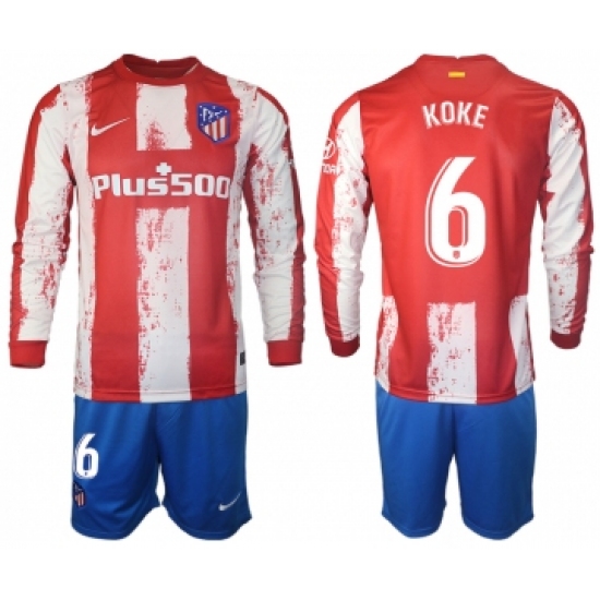 Men 2021-2022 Club Atletico Madrid home red Long Sleeve 6 Soccer Jersey