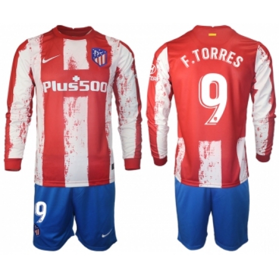 Men 2021-2022 Club Atletico Madrid home red Long Sleeve 9 Soccer Jerseys
