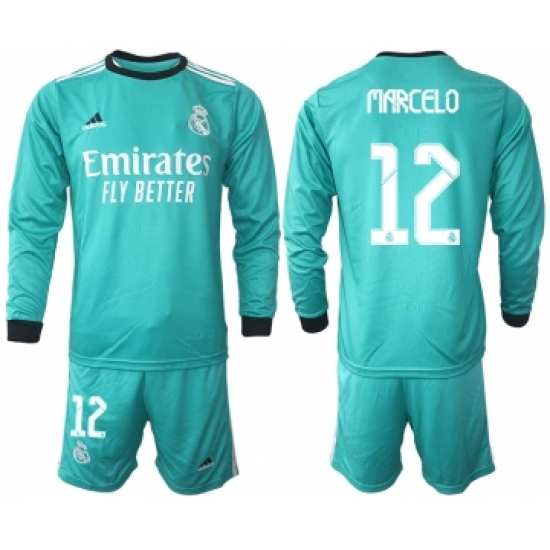 >Men 2021-2022 Club Atletico Madrid second away blue Long Sleeve 12 Soccer Jersey