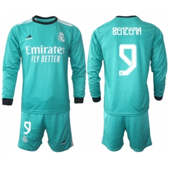 >Men 2021-2022 Club Atletico Madrid second away blue Long Sleeve 9 Soccer Jersey