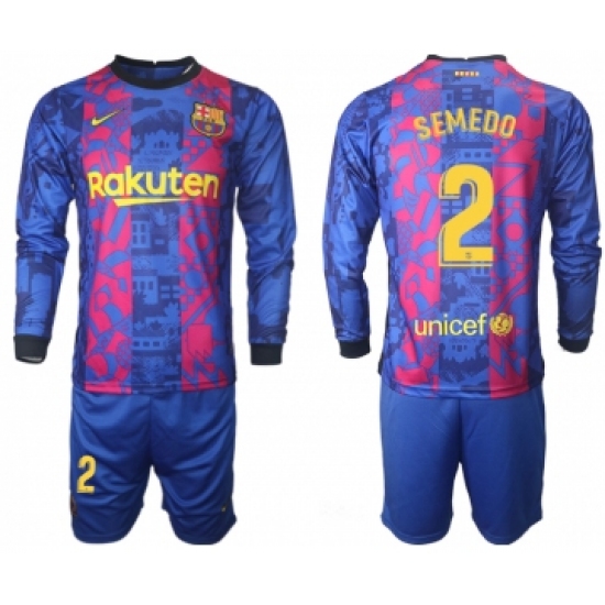 >Men 2021-2022 Club Barcelona Second away blue Long Sleeve 2 Soccer Jersey