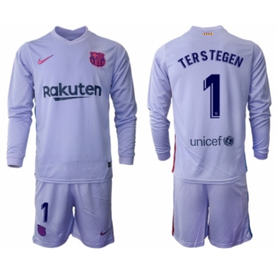 Men 2021-2022 Club Barcelona Second away purple Long Sleeve 1 Soccer Jersey