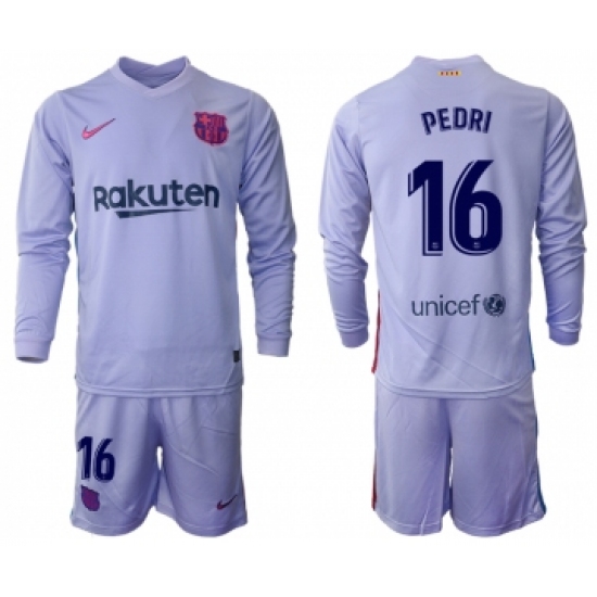 Men 2021-2022 Club Barcelona Second away purple Long Sleeve 16 Soccer Jersey