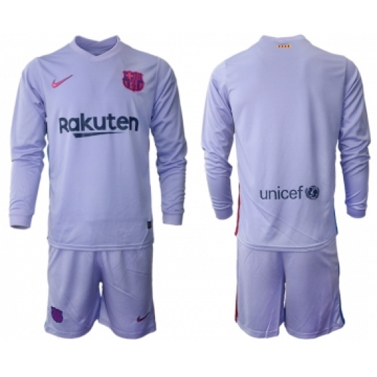 >Men 2021-2022 Club Barcelona Second away purple Long Sleeve blank Soccer Jersey