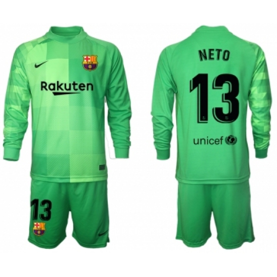 >Men 2021-2022 Club Barcelona green goalkeeper Long Sleeve 13 Soccer Jersey