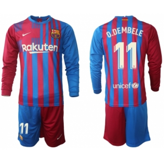 >Men 2021-2022 Club Barcelona home red blue Long Sleeve 11 Nike Soccer Jersey