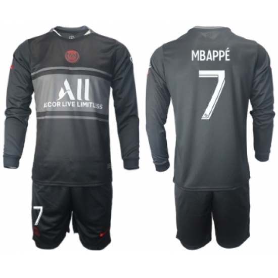 >Men 2021-2022 Club Paris St German Second away black Long Sleeve 7 Soccer Jersey