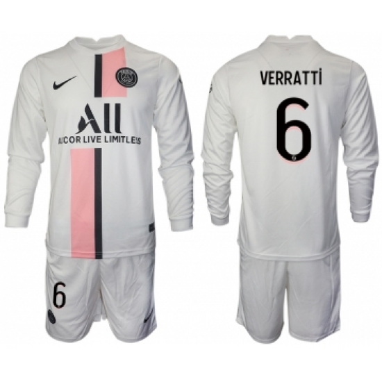 >Men 2021-2022 Club Paris St German away white Long Sleeve 6 Soccer Jersey