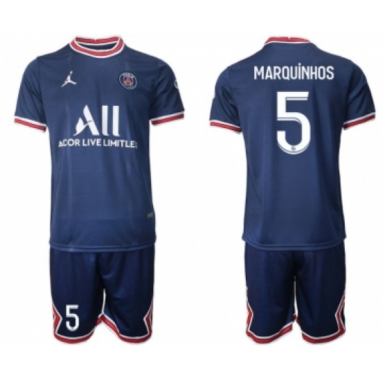 >Men 2021-2022 Club Paris St German home blue 5 Soccer Jersey