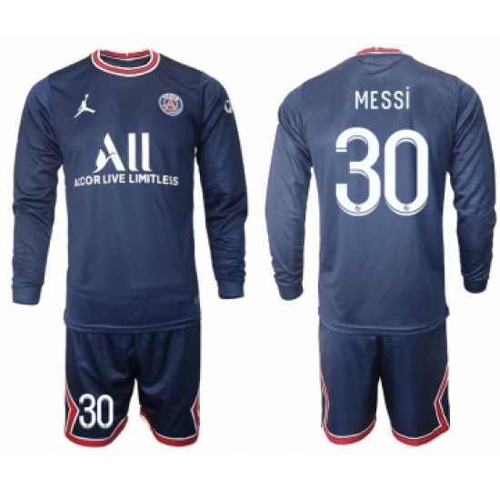 >Men 2021-2022 Club Paris St German home blue Long Sleeve 30 Soccer Jersey