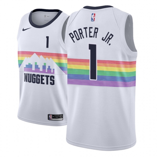 >Men NBA 2018-19 Denver Nuggets #1 Michael Porter Jr. City Edition White Jersey