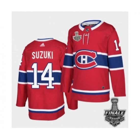 Men's Adidas Canadiens #14 Nick Suzuki Red Road Authentic 2021 Stanley Cup Jersey