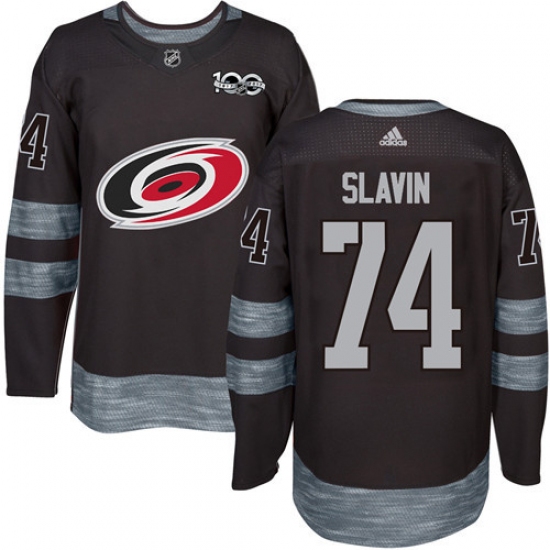 Men's Adidas Carolina Hurricanes #74 Jaccob Slavin Premier Black 1917-2017 100th Anniversary NHL Jersey