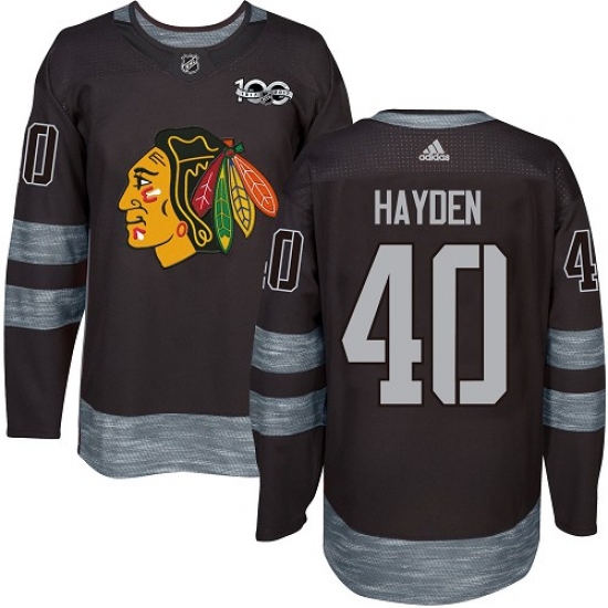Men's Adidas Chicago Blackhawks #40 John Hayden Authentic Black 1917-2017 100th Anniversary NHL Jersey