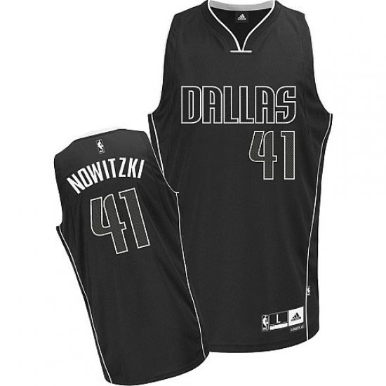 Home>NBA>Dallas Mavericks>Dirk Nowitzki>Men's Adidas Dallas Mavericks #41 Dirk Nowitzki Authentic Black/White Fashion NBA Jersey