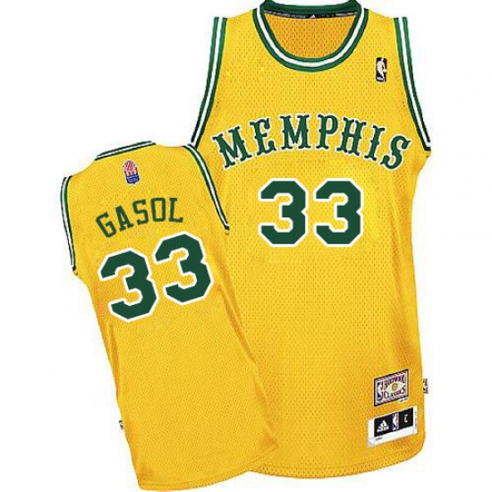 Men's Adidas Memphis Grizzlies #33 Marc Gasol Authentic Gold ABA Hardwood Classic NBA Jersey