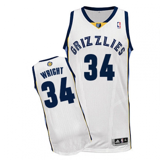 Men's Adidas Memphis Grizzlies #34 Brandan Wright Authentic White Home NBA Jersey