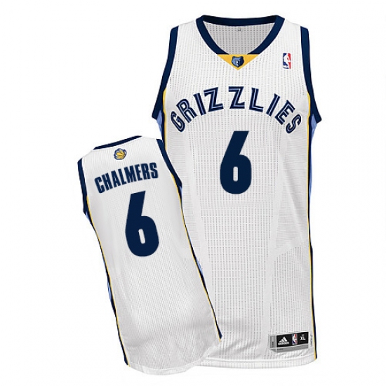 Home>NBA>Memphis Grizzlies>Mario Chalmers>Men's Adidas Memphis Grizzlies #6 Mario Chalmers Authentic White Home NBA Jersey