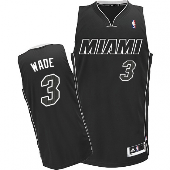 Men's Adidas Miami Heat #3 Dwyane Wade Authentic Black/White NBA Jersey
