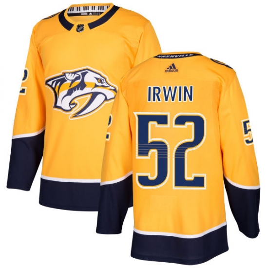 Home>NHL>Nashville Predators>Matt Irwin>Men's Adidas Nashville Predators #52 Matt Irwin Authentic Gold Home NHL Jersey