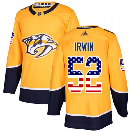 Home>NHL>Nashville Predators>Matt Irwin>Men's Adidas Nashville Predators #52 Matt Irwin Authentic Gold USA Flag Fashion NHL Jersey