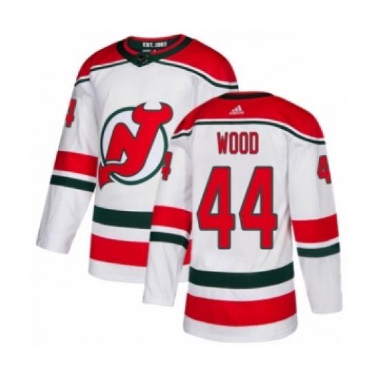 Men's Adidas New Jersey Devils #44 Miles Wood Authentic White Alternate NHL Jersey